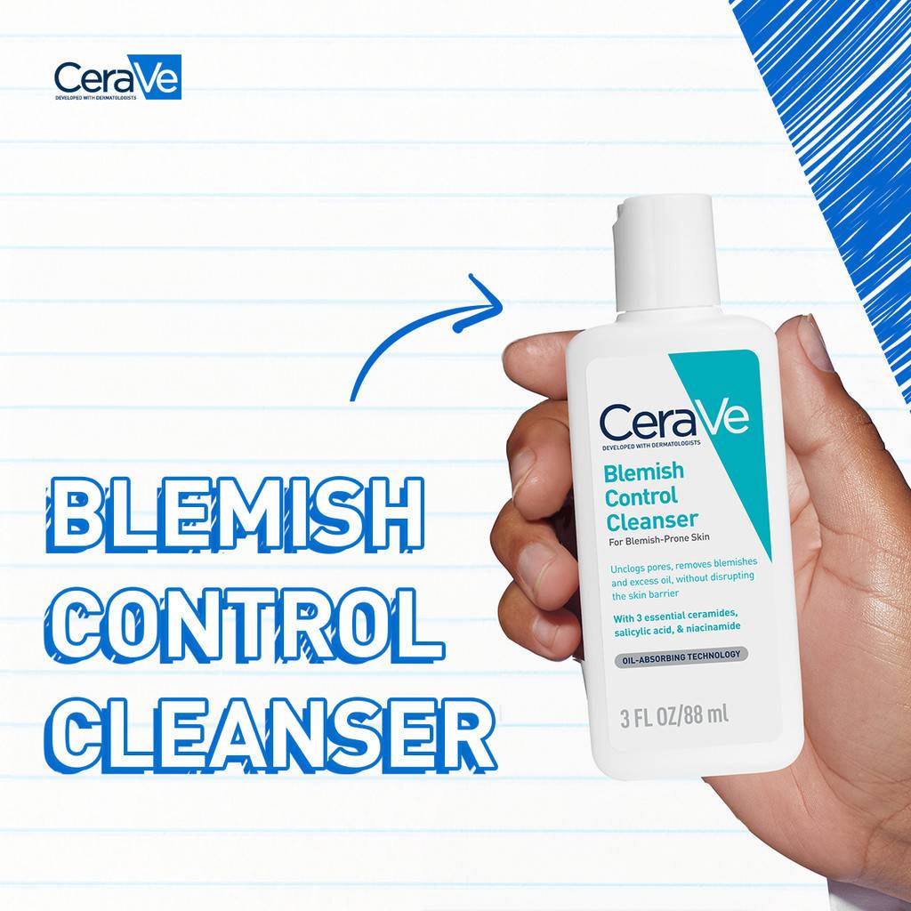 Sữa Rửa Mặt Giảm Mụn Blemish Control Cleanser 88Ml đến từ thương hiệu Cerave được phát triển cùng các chuyên gia da liễu, sữa rửa mặt dạng gel tạo bọt với 2% Salicylic Acid và đất sét tinh khiết giúp làm sạch sâu, thông thoáng lỗ chân lông và hỗ trợ giảm mụn hiệu quả. Công thức dịu nhẹ chứa thêm Niacinamide giúp làm dịu da, cùng 3 loại Ceramide thiết yếu giúp phục hồi và duy trì hàng rào bảo vệ da. Sản phẩm phù hợp cho làn da dầu mụn, hỗ trợ cải thiện làn da khỏe mạnh mà không gây khô căng hay kích ứng.